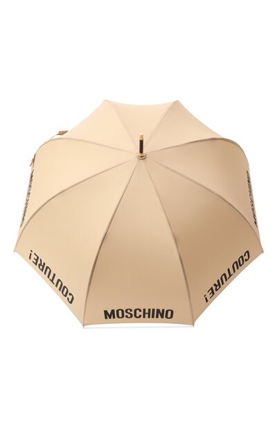 Зонт-трость из полиэстера украсили контрастным паттерном, сочетающим логотип и слово Couture!. Аксессуар с металлическим каркасом и кнопкой раскрытия оснастили J-образной пластиковой ручкой. В комплекте — чехол с плечевым ремнем.