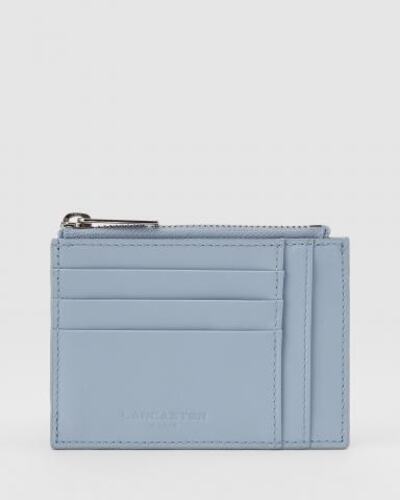Картхолдер Lancaster из кожи в голубом цвете. Картхолдер пригодится, если вы решите взять с собой только самые необходимые карты. Аксессуар выполнен из натуральной кожи. 3 слота для карт и два слота для чеков с одной стороны, окошко с прозрачной вставкой и два слота с другой стороны, дополнительный карман на молнии в центре. О принадлежности к бренду сообщает тиснёный логотип Lancaster Paris.