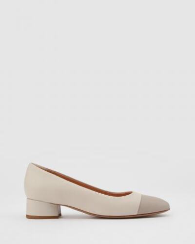Туфли-лодочки Principe di Bologna из натуральной кожи. Лодочки в бежевом цвете – классическое дополнение женского гардероба. Акцентом дизайна служит контрастный носок серого цвета, придающий модели оригинальный штрих. А благодаря широкому устойчивому каблуку высотой 30 мм. в этой паре можно ходить целый день - идеально для офисного дресс-кода.