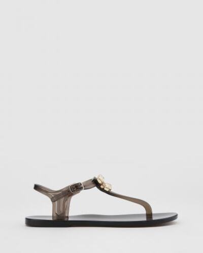 Сандалии Principe di Bologna из резины в тёмно-сером цвете. Сандалии с акцентными деталями украсят летние образы и наряды для вечеринок у бассейна. Модель выполнена из резиновых полос с застежкой, которые мягко облегают стопу. Подошва также из резины. В качестве акцента — крупные стразы, расположенные спереди. Сандалии не займут много места в чемодане, поэтому станут идеальным решением для отпуска.