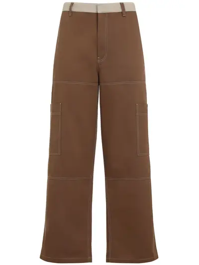 chestnut brown concealed front fastening belt loops two side slit pockets two side patch pockets two rear jetted pockets