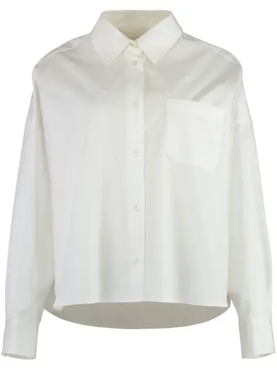 white front button fastening buttoned-cuff sleeves chest patch pocket cutaway collar
