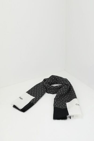 Шарф из хлопка и льна с монограммой логотипа Calvin Klein 7301642 (чёрный, lpn29053431)