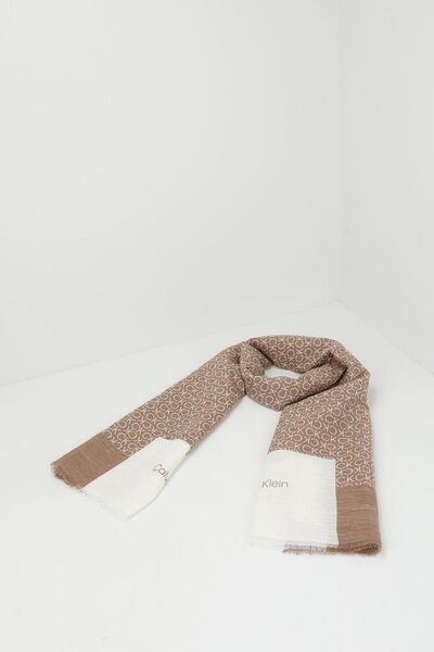Шарф из хлопка и льна с монограммой логотипа Calvin Klein 7301645 (бежевый, lpn29053436)