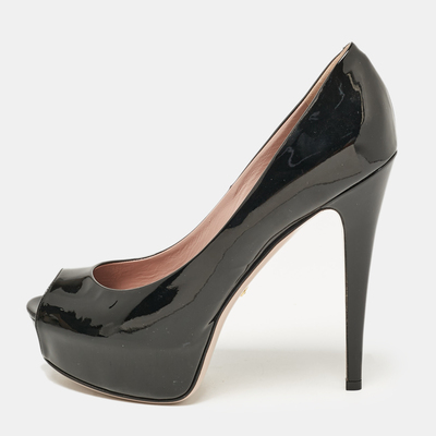 Gucci Black Patent Leather Peep Toe Pumps Size 38 1097922 (чёрный, lpn29053579)