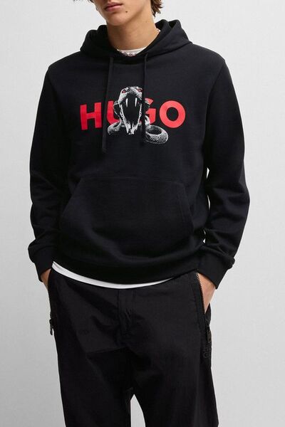 Худи хлопковое с карманом Hugo 7324567 (чёрный, lpn29054002)