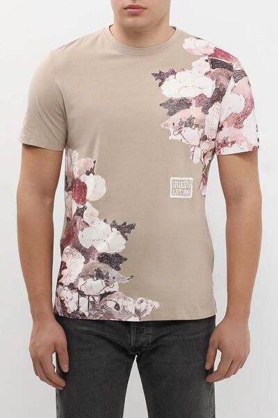Футболка хлопковая с принтом Guess 7347301 (бежевый, lpn29054317)