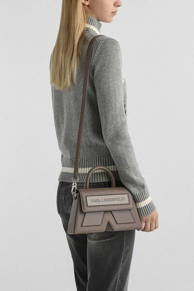 Сумка кросс-боди кожаная с логотипом Ikon Karl Lagerfeld 7577335 (серый, lpn29054519)