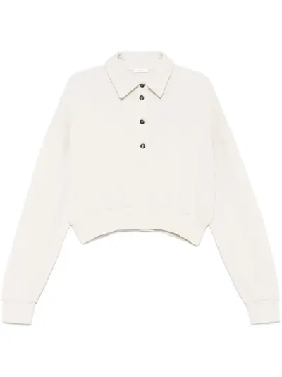 ecru front button placket polo collar drop shoulder ribbed cuffs and hem