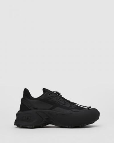 Кроссовки Diesel в чёрном цвете. Эти мужские кроссовки сочетают в себе спортивный и смелый городской стили. Изготовленные из прочного рипстопа с отделкой из термополиуретана, эти кроссовки оснащены эластичной системой быстрой шнуровки, дышащей подкладкой и цепкой резиновой подошвой с ультра толстым профилем.