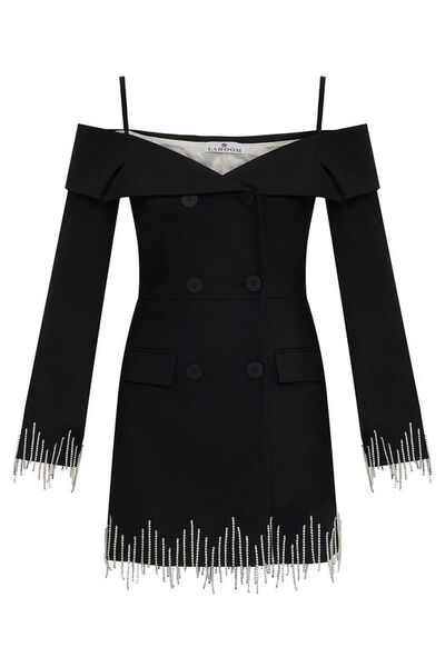Платье жакет с декольте со стразами Laroom 6989193 (чёрный, lpn29070751)