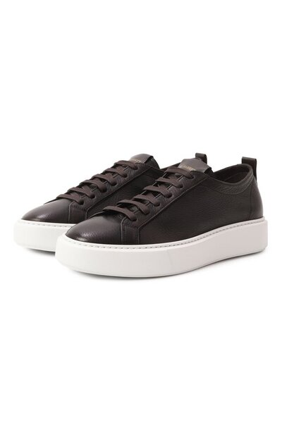 Кеды с массивной контрастной подошвой выполнены из прочной оленьей кожи. Задник с фирменным контрастным стежком дополнен небольшой петлей с брендированной пуговицей.