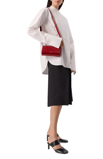 Сумку All-Day, закрывающуюся клапаном с магнитной кнопкой, изготовили из телячьей кожи. Внутри предусмотрели карман на молнии и шесть слотов для карт. Аксессуар можно носить не только как клатч, но и на плече, пристегнув регулируемый ремень, входящий в комплект.