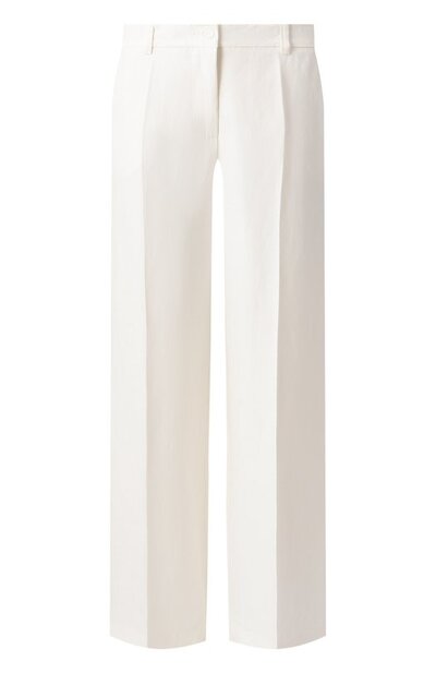 Брюки со стрелками органично впишутся в базовый гардероб и гармонично дополнят как образ total white, так и контрастный комплект. Модель с четырьмя карманами выполнили из микса вискозы и льна.