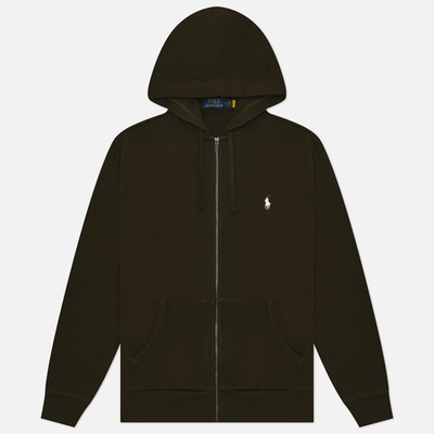Материал: 100% хлопок. Страна-производитель: Турция. Мужская толстовка Polo Ralph Lauren Loopback Fleece Full-Zip Hoodie, цвет оливковый, размер S