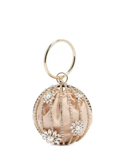 gold-tone clasp fastening drawstring fastening single metallic top handle pearl detailing
