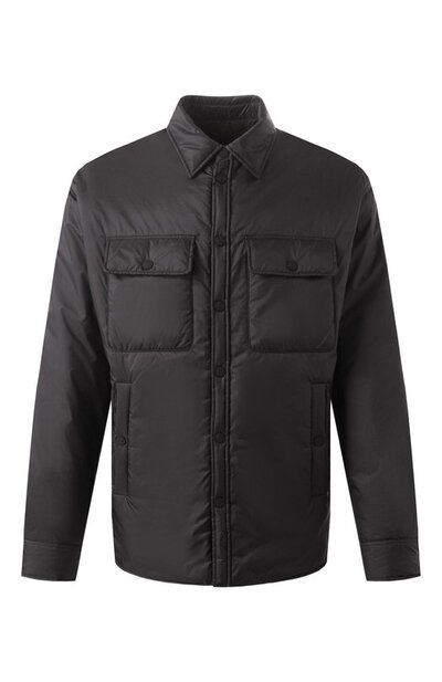 Утепленную куртку-рубашку сшили из гладкого полиэстера. Модель с фигурным низом и прямоугольными манжетами дополнили двумя нагрудными и парой боковых карманов. Сзади — фирменная нашивка.