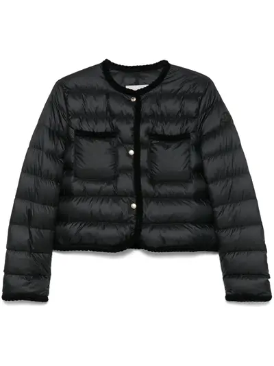 black front press-stud fastening two chest patch pockets quilted logo patch at the sleeve