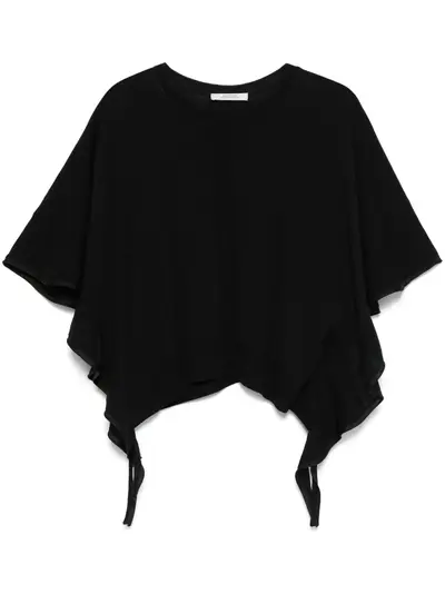 black crew neck wide sleeves raised seam detail
