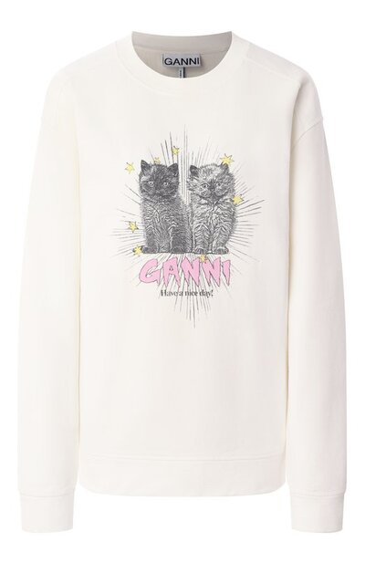 Хлопковый свитшот Ganni t4163 (белый, lpn29119449)