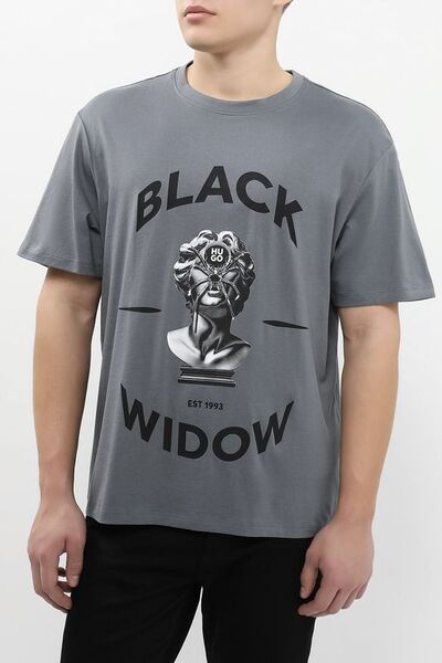 Футболка хлопковая с принтом Hugo 7322947 (серый, lpn29119935)