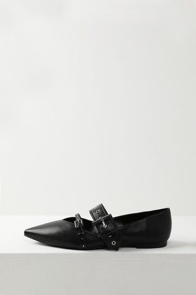 Туфли-балетки кожаные с пряжками на ремешках Hugo 7338220 (чёрный, lpn29119966)