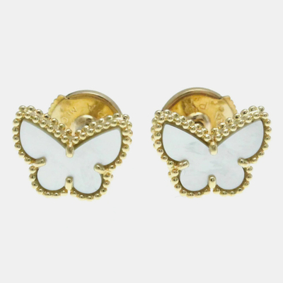Van Cleef&Arpels 18K Yellow Gold, Mother of Pearl Sweet Alhambra Papillon Stud Earrings 1101940 Van Cleef&Arpels (жёлтый, lpn29122815)