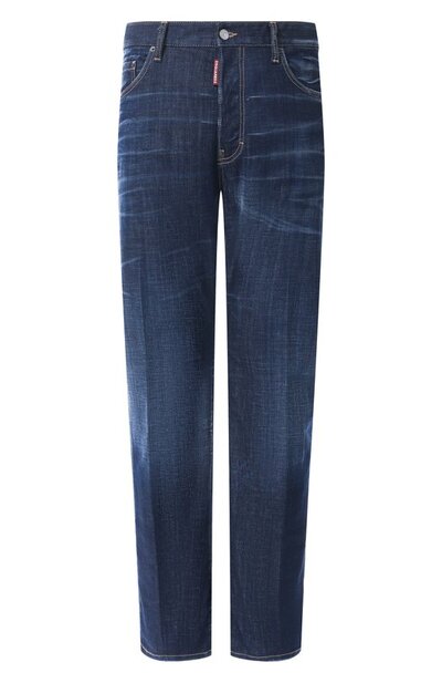 Джинсы с пятью карманами выполнили из слегка эластичного хлопкового денима с искусственными заломами и потертостями. Ширинку дополнили брендированным ярлыком, а на поясе сзади закрепили фирменный патч.