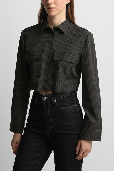 Рубашка укороченная в полоску Hugo 7072131 (серый, lpn29135153)