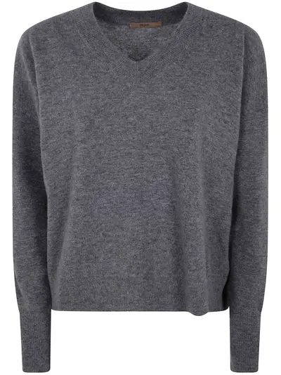 anthracite grey V-neck long sleeves ribbed cuffs and hem