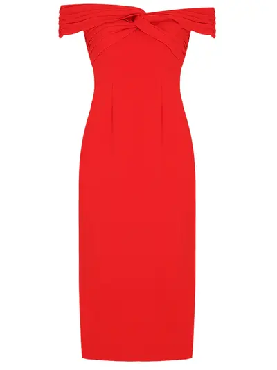 -Красное платье-миди купажированного состава от SELF-PORTRAIT.