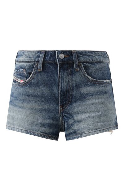 Джинсовые шорты De-Yuba с посадкой на бедрах сшиты из хлопкового денима с декоративными потертостями и заломами. Один из пяти карманов и пояс украшены брендированными патчами.