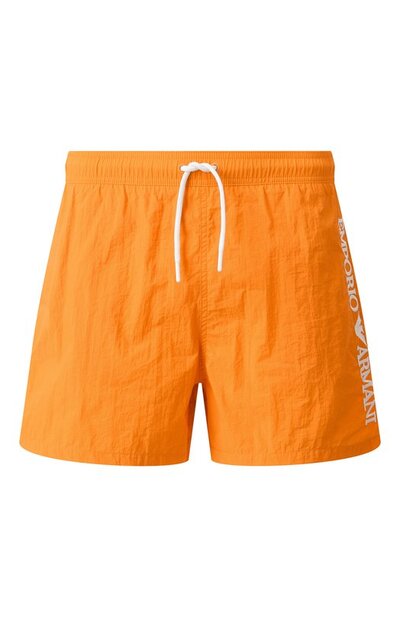 Плавки-шорты с двумя карманами и регулируемым поясом-кулиской сшили из быстросохнущего полиэстера с жатой фактурой. Модель украсили сбоку вышитым вертикальным логотипом марки.