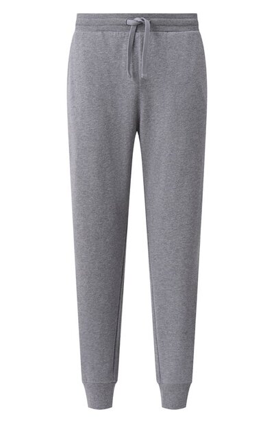 Джоггеры с поясом-кулиской сшиты из меланжевого хлопкового трикотажа с добавлением полиэстера. Эластичные брюки с двумя врезными карманами украшены широкими контрастными лампасами с эмблемами марки.