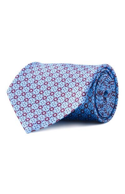 Шелковый галстук с геометрическим узором отлично впишется в деловой образ с классическим костюмом. Длина аксессуара позволяет сформировать сложный виндзорский узел.