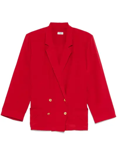 circa 1990s blood red silk notched lapels double-breasted button fastening long sleeves two front patch pockets straight hem Condition: GOOD. This previously owned and used item is in good condition with minimal signs of use. This may include fading of material or plating and scratches.
