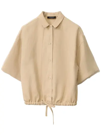 sand beige front button fastening drawstring hem spread collar short sleeves