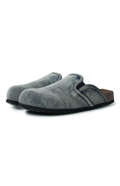 Сабо D-woodstock из стираного денима дополнили эластичными вставками. Модель с замшевой внутренней отделкой и формованной пробковой стелькой установили на протекторную резиновую подошву.