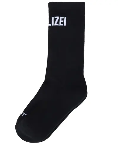 -Черные носки из хлопкового трикотажа от VETEMENTS. -Модель стандартной длины с контрастными логотипами подойдёт как для спортивных образов, так и на каждый день. Данный товар обмену и возврату не подлежит, доставка осуществляется при условии предварительной оплаты картой.