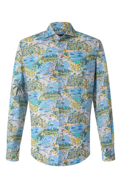 Рубашка с тропическим принтом добавит ярких красок повседневному образу. Модель с фигурным низом, складками на спинке и закругленными манжетами сшили из тонкой хлопковой ткани.