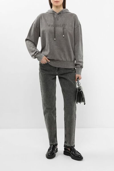 Худи хлопковое с логотипом Twin-Set 6454984 Twin-Set (серый, lpn29175448)