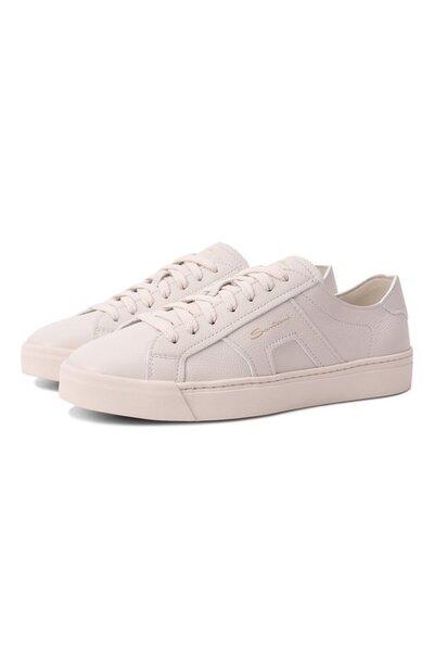 Кеды на подошве в тон выполнены из зернистой кожи, а частичная внутренняя отделка – из гладкой. Боковую панель в форме перемычки монков украсили золотистым логотипом. Фирменной символикой декорировали и язычок с RFID-меткой.
