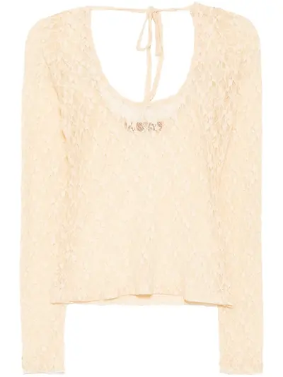 light beige semi-sheer construction stretch-jersey