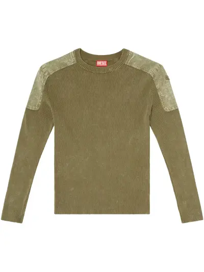 light olive green crew neck fine ribbed embroidered logo at the sleeve contrasting-fabric sleeves