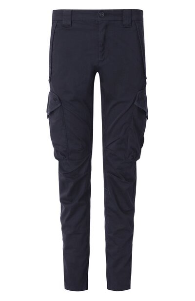 Брюки кроя Ergonomic fit выполнили из хлопкового атласа стрейч. Модель с потайной кулиской на поясе и вытачками на коленях окрасили в готовом виде. На одном из шести карманов разместили фирменную линзу, а сзади изделие дополнили брендированной нашивкой.