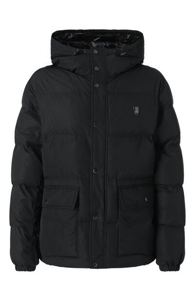 Сшитую из полиэстера стеганую куртку на гусином пуху дополнили накладными карманами с клапанами и регулируемыми кулисками по краю капюшона и внизу. Спереди модель с эластичными манжетами и штормовой планкой, скрывающей молнию, украсили фирменной накладкой в виде щита с литерой B.