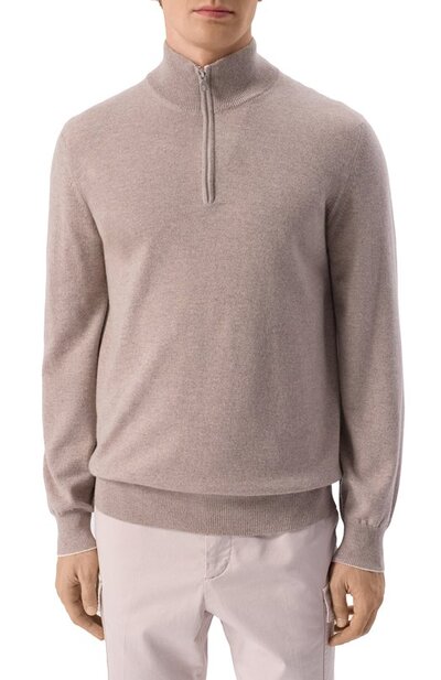 Кашемировый джемпер с короткой молнией на высоком вороте поддержит повседневный образ любой степени сложности. Например, наши стилисты предлагают носить модель классическими брюками, стеганым жилетом и дезертами.