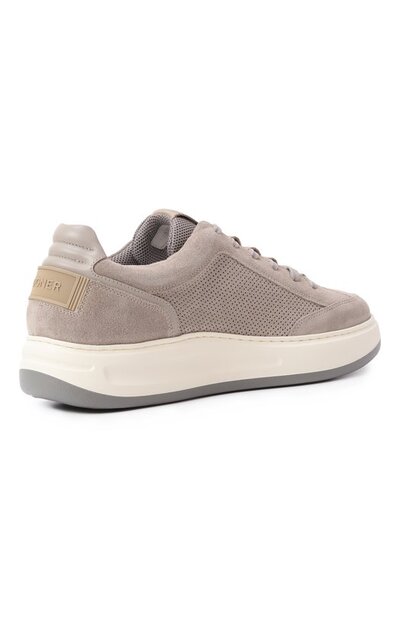Кроссовки Dallas с двухцветной подошвой и текстильным язычком сшили из замши. Модель украсили эмблемой на перфорированных боковых панелях, усиливающей лентой с логотипом на шнуровке и резиновой брендированной вставкой на заднике со стеганой кожаной отделкой.
