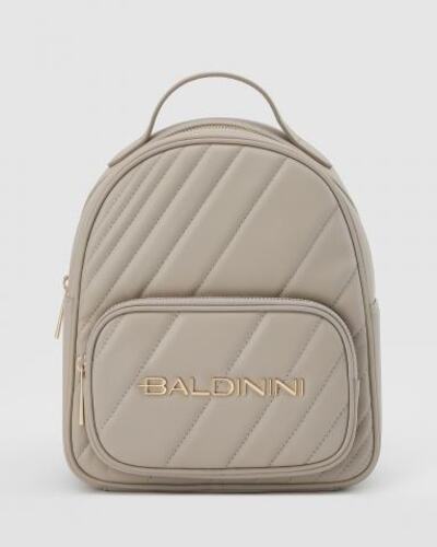 Рюкзак Baldinini из бежевой натуральной кожи. Изящный рюкзак из кожи станет незаменимым спутником в городских буднях. Рюкзак выполнен из мягкой кожи с модной косой строчкой, лямки выполнены из кожи и регулируются по длине. Спереди большой карман на молнии. Застёжка на молнию, внутри текстильная подкладка, карман на молнии и отделение для ноутбука или планшета. О принадлежности к бренду говорит фирменный логотип спереди.