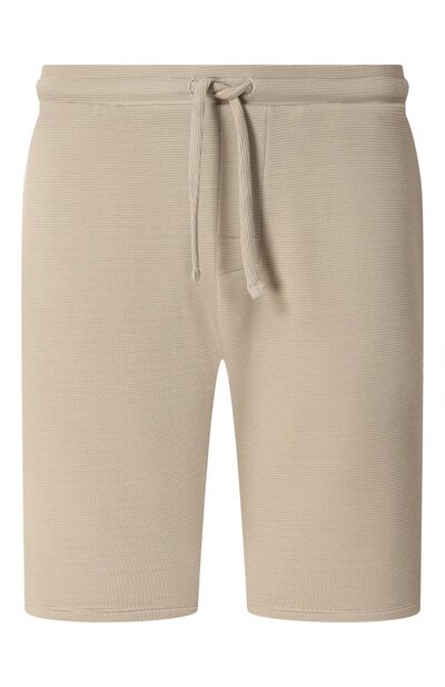 Шорты с эластичным поясом-кулиской и двумя карманами сшили из трикотажа оттоман, связанного из модала. Модель украсили вышитым логотипом и фирменным триколором сбоку.